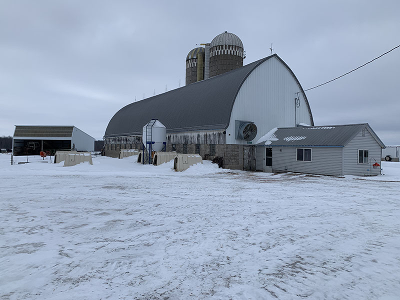 | BARN: | 32'X110' GRADE A DAIRY BARN. 51 STALLS WITH MATS. NEWER METAL ROOF. GRAVITY FLOW MANURE SYSTEM. TUNNEL VENTILATION. GRADE A MILK HOUSE WITH 4 UNIT BOUMATIC PIPELINE. MUELLLER 500 GALLON BULK TANK |